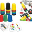 - Flip a card and stack or line up your five colored cups to match the picture. Ring The bell first to win!